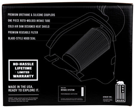 The AIRAID Jr. Kit targets the restrictive elements of factory intake systems, the intake tube and the paper filter, in order to help boost horsepower and mileage. This air intake system offers a simple, economical introduction into the performance aftermarket with the introduction of an AIRAID Premium Direct-Fit Replacement Filter and an AIRAID Modular Intake Tube. As with other AIRAID intake systems, the AIRAID Jr. Kit helps to straighten and improve clean air flow to the engine for added throttle response and increased horsepower and torque. Each kit is custom made to fit specific vehicles and is easy to install and requires no drilling. Unlike stock paper filters, AIRAID Direct-Fit Replacement Filters are washable, reusable and fully backed by the AIRAID No-Hassle Lifetime Warranty. Some AIRAID air intakes are not legal for sale or use in California and other states adopting California emission standards, while others are 50 state legal. View the product's vehicle applications to determine the legal status for each vehicle.
