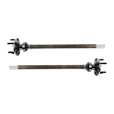 Detroit Speed, Inc. 31 spline axles are built to withstand extreme use. Engineered for high performance street, track events and autocross. Using high quality alloy steel, Induction heat treated and magnafluxed to insure quality and reliability. Using 1/2"-20 by 3" studs in GM (5 x 4-3/4") and Ford (5 x 4-1/2") bolt patterns. They come with Torino flange bearings already installed on axle. Sold as a pair (2) Lug Nuts not included.