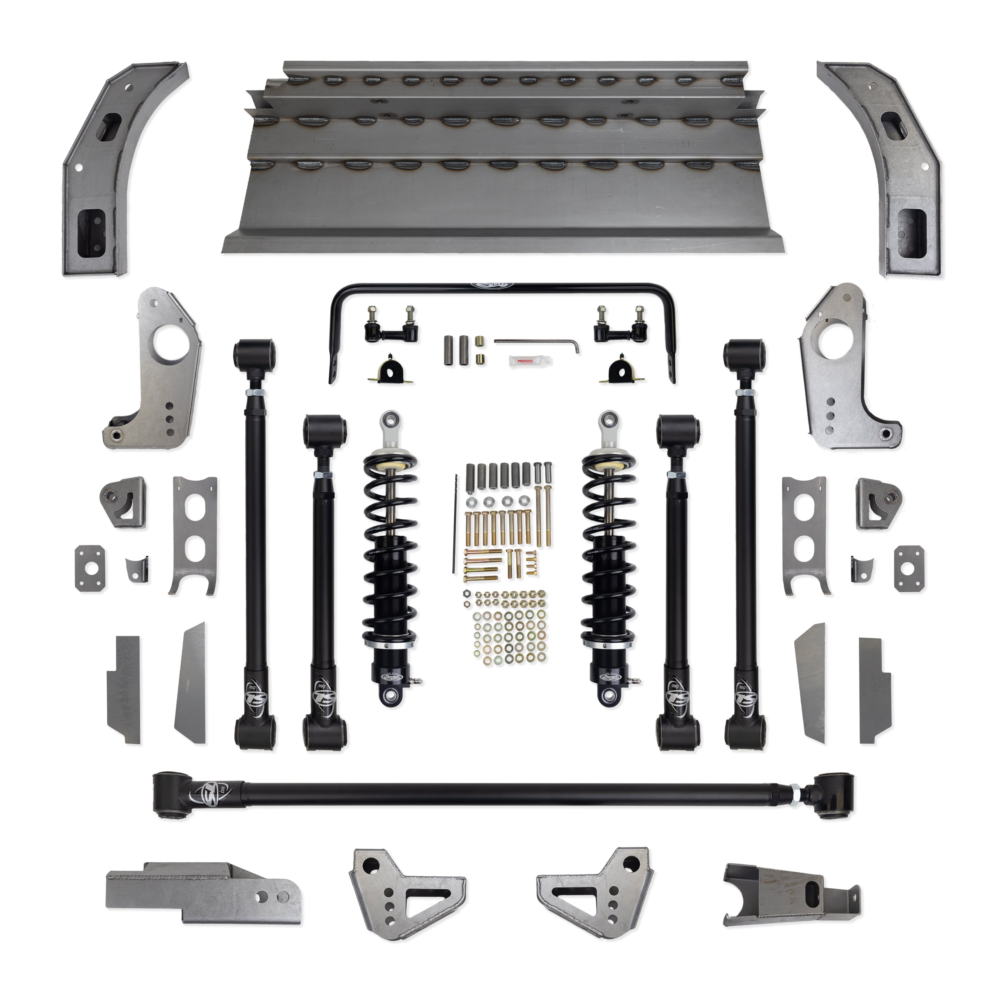 - Long panhard rod for rear axle lateral control during hard cornering