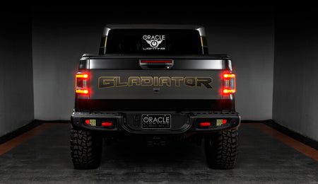Designed to fit flush with the truck bed of the Jeep Gladiator, the new JT Flush Tail Lights from ORACLE Lighting offer new LED features and improved styling. This innovative design is a sleek tail light for Jeep Gladiators that wraps tightly around the truck. Protruding out significantly less than the factory tail lights, this low-profile design avoids damage while trail riding. Because of the nearly flush wrap-around design, the lighting can be visible from any rear angle, making it a unique solution for the Jeep. These Jeep Gladiator tail lights provide improved aesthetics and functional LED lighting features including high-powered reverse lights and signature perimeter lighting. In addition to standard features, the plug-and-play design features an enhanced reverse function and caters to the Jeep's optional cross-traffic sensor. The reverse light features 12 high-powered LEDs for optimal rear illumination. The cross-traffic sensor can be swapped directly over from the factory assembly and easily installs into the ORACLE Lighting tail lights for Jeep Gladiator. These flush-mount tail lights are compatible with base and LED packages. Gain sleek styling that compliments the original body lines and tons of innovative features. With the superior quality and durability that ORACLE Lighting is known for, these tail lights are the perfect upgrade for your Jeep Gladiator!