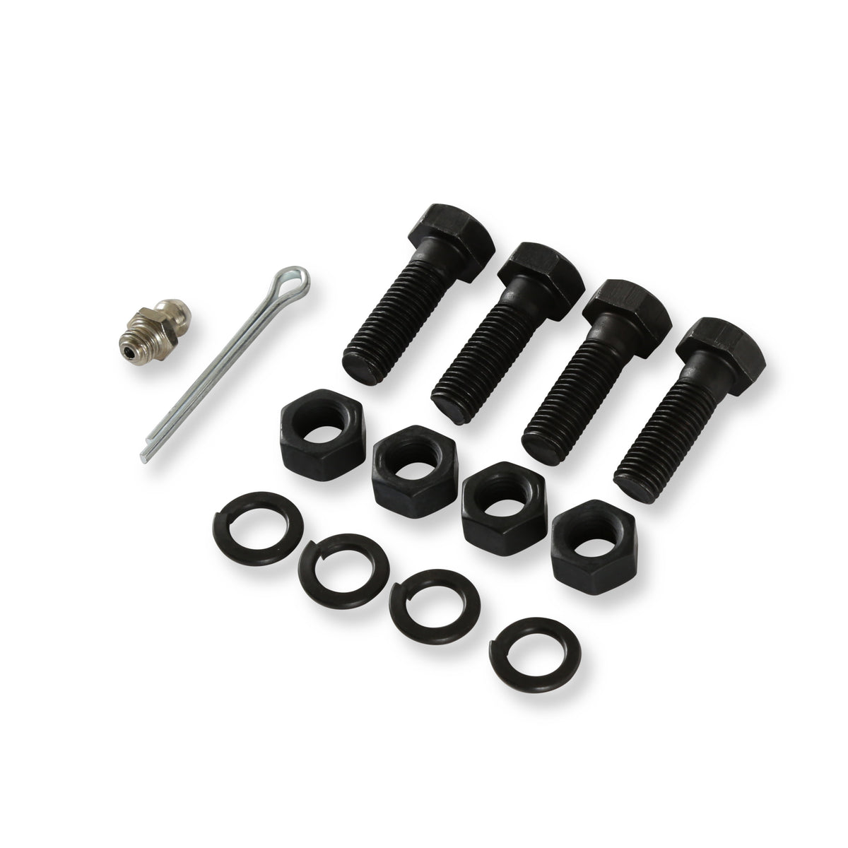 - Includes fasteners, castle nut, cotter pin and grease fitting
