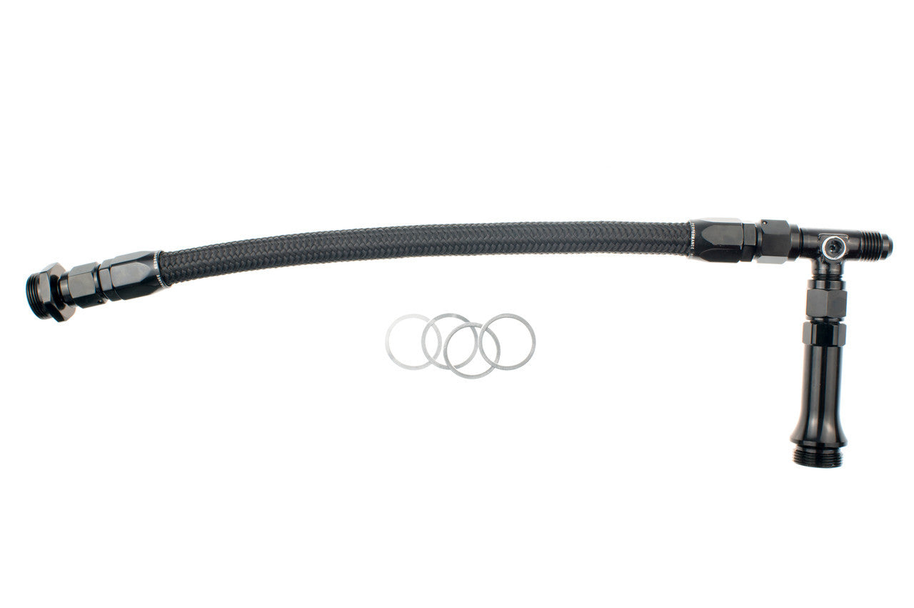 Carburetor Fuel Line - 5140 Series - 6 AN Male Inlet - Dual 7/8-20 in Male Outlets - Braided Stainless Hose - Black Anodized - Holley 4150 / 4160 Carburetors - Kit