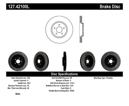 StopTech Infiniti G37 / Nissan 370Z SportStop Slotted & Drilled Front Left Rotor
