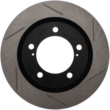 StopTech Slotted Sport Rotors are 1-piece direct replacement brake discs for factory brake systems and stock calipers that look great behind your wheels – and offer significantly improved braking performance. The unique slotting aids with heat and brake dust dispersal; prevents glazing of the pads; adds bite and improves wet and dry braking performance. Built to last; the black e-coating provides protection from corrosion and the high carbon metallurgy (in most applications) offers quieter operation; better crack resistance and increased performance.